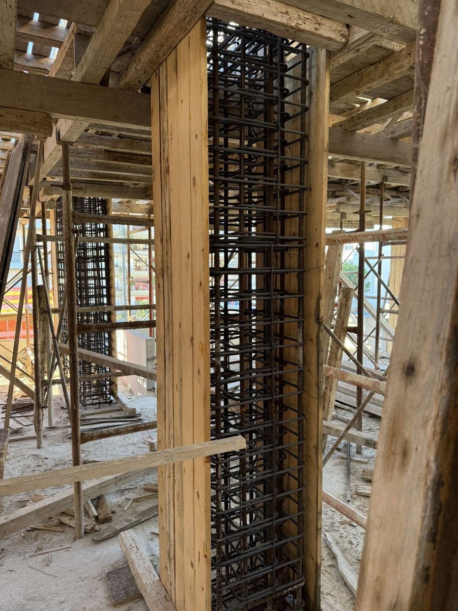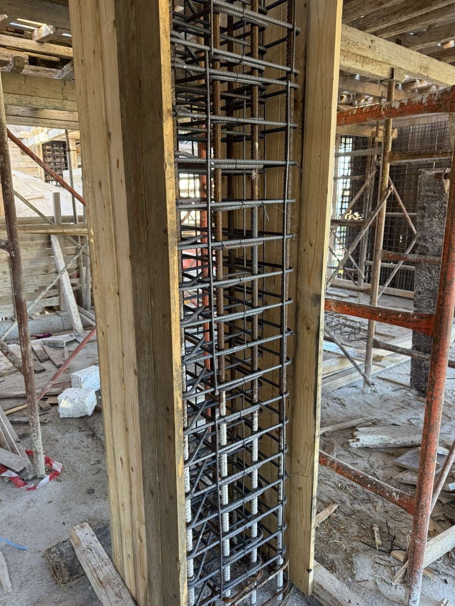 Πυλωτή: Τρίψιμο όλων των επιφανειών με τριβείο, αστάρωμα με ακρυλικό αστάρι της Vitex και ενισχυμένο γαλάκτωμα Ravinex.