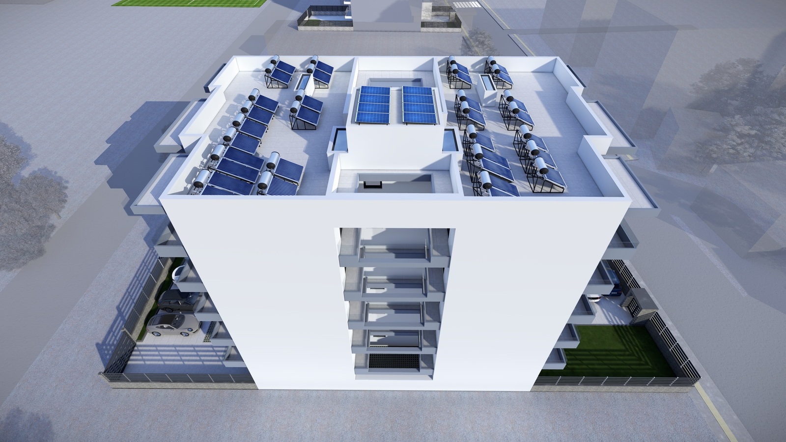 Τα δυάρια διαμερίσματα θα έχουν ατομικό σύστημα ψύξης-θέρμανσης VRV ( MULTI, 1 εξωτερική μονάδα της MIDEA και 2 εσωτερικές split ).