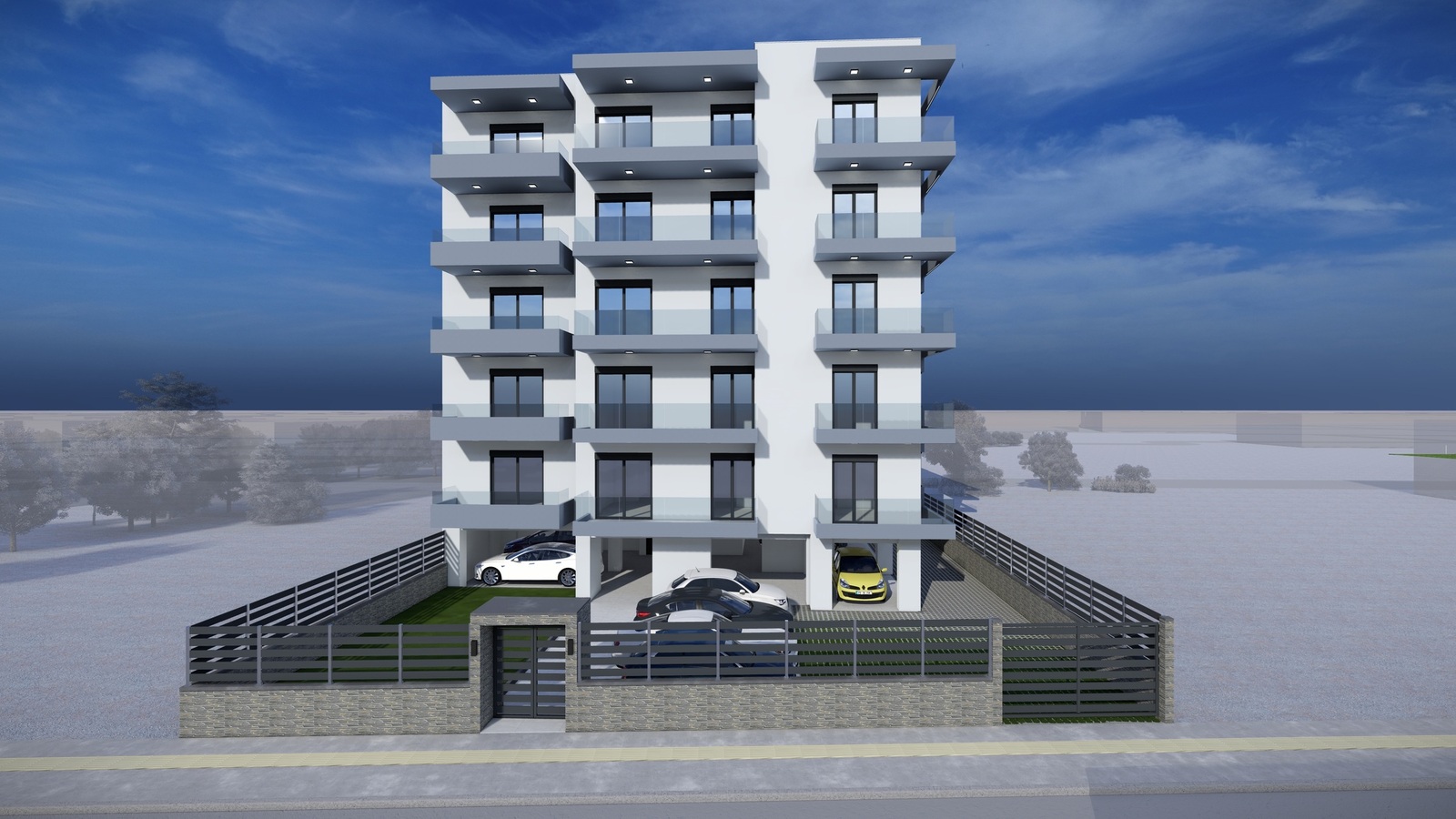 Ο περιβάλλοντας χώρος θα είναι πλήρης διαμορφωμένος με γκαζόν, φυτά και δέντρα.