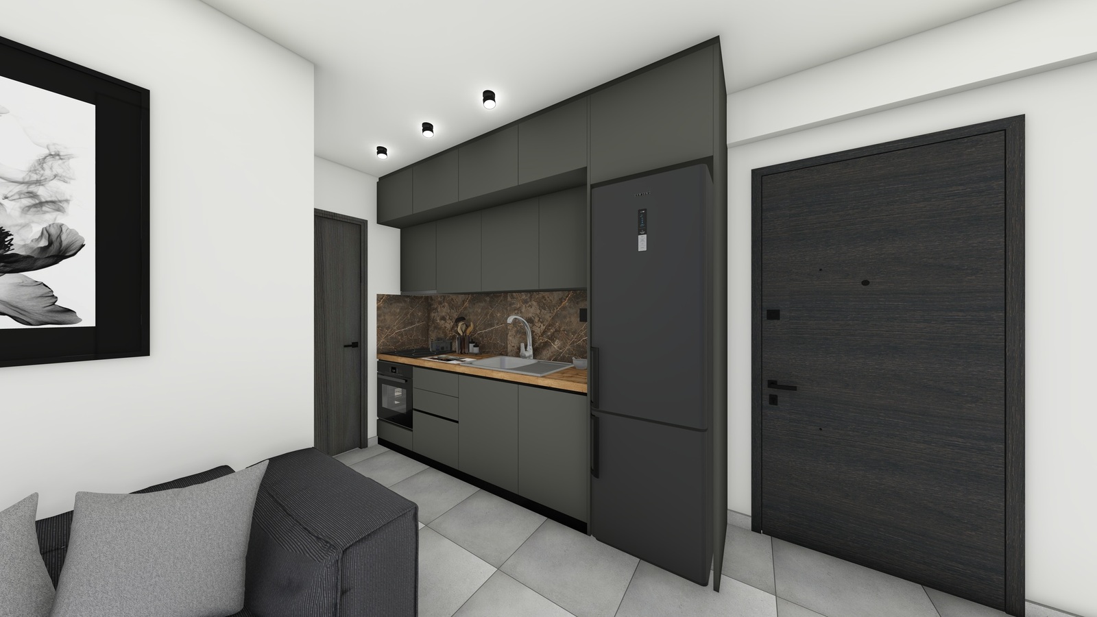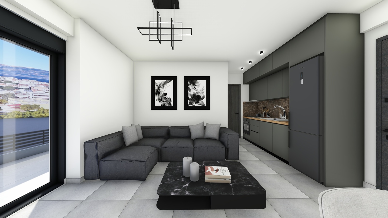 Αποτελείται από ενιαίο χώρο καθιστικό με κουζίνα, μπάνιο, 1 υπνοδωμάτιο, μεγάλο μπαλκόνι,