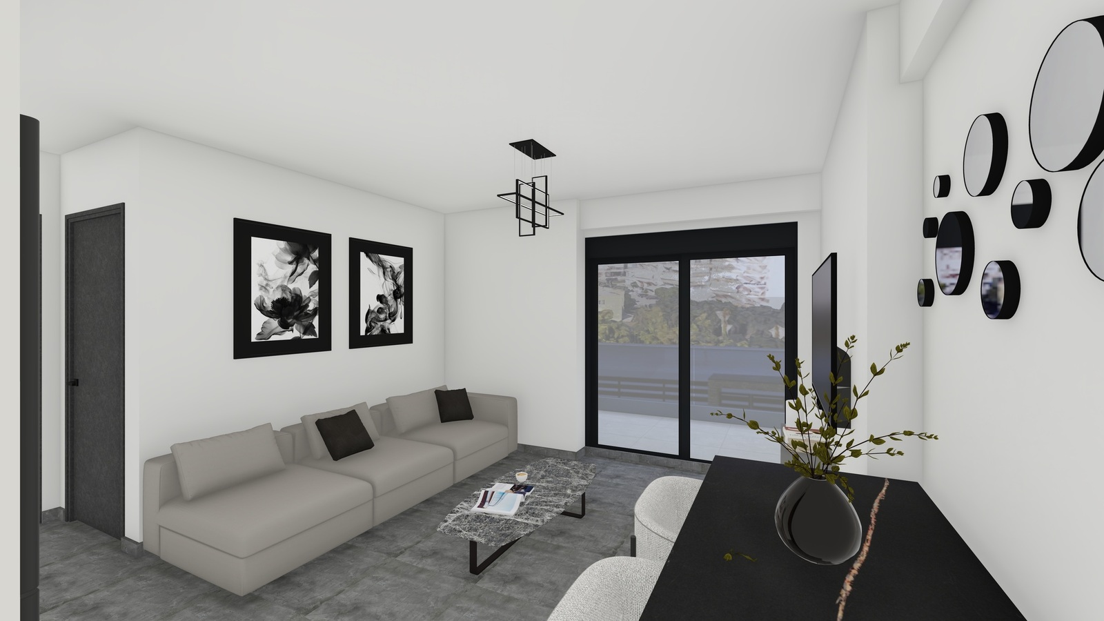 Ο περιβάλλοντας χώρος θα είναι πλήρης διαμορφωμένος με γκαζόν, φυτά και δέντρα.