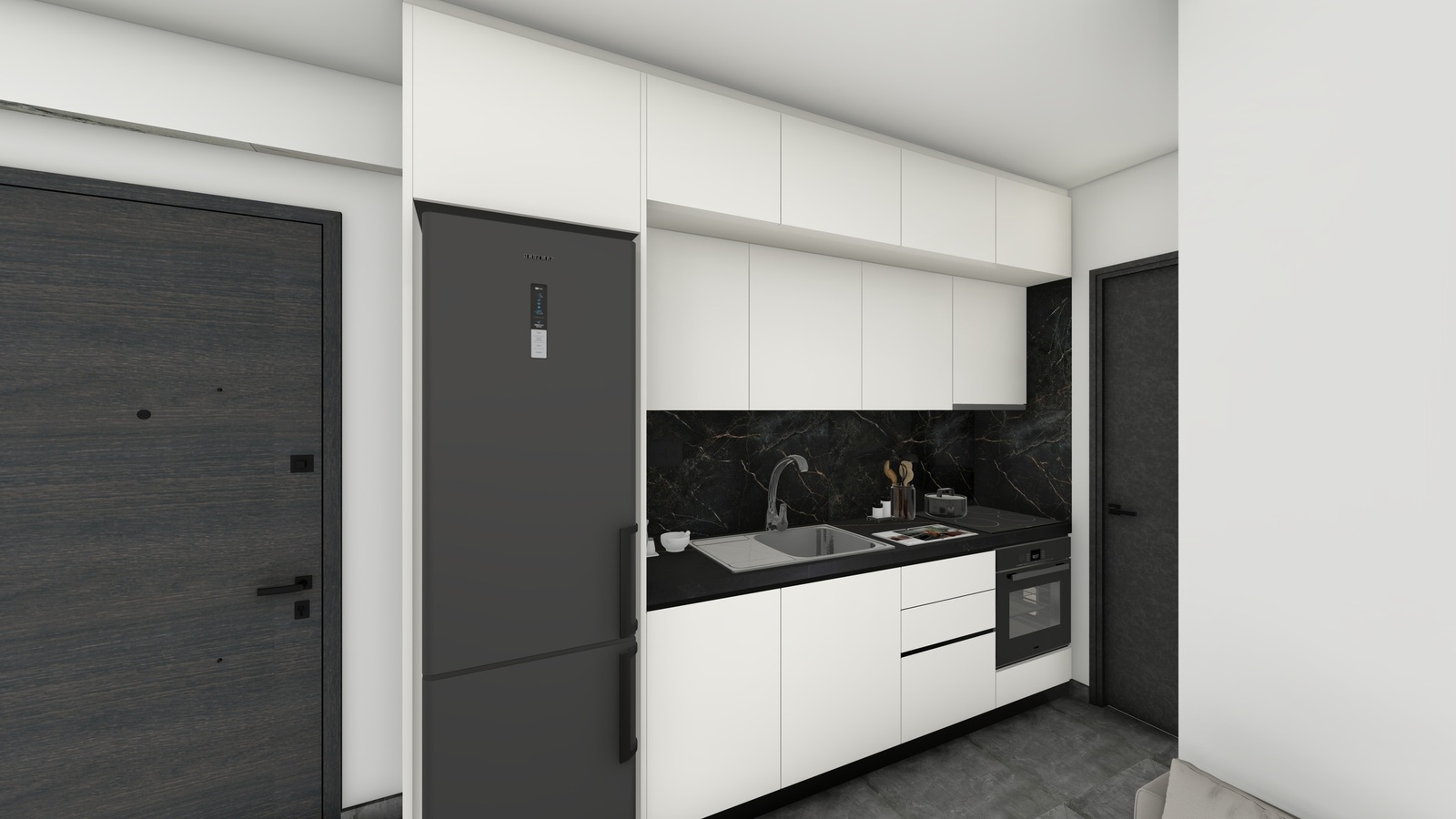 Οι εσωτερικές πόρτες των διαμερισμάτων θα είναι Laminate από άνθυγρο κάσωμα και πρεβάζι πλακάζ.