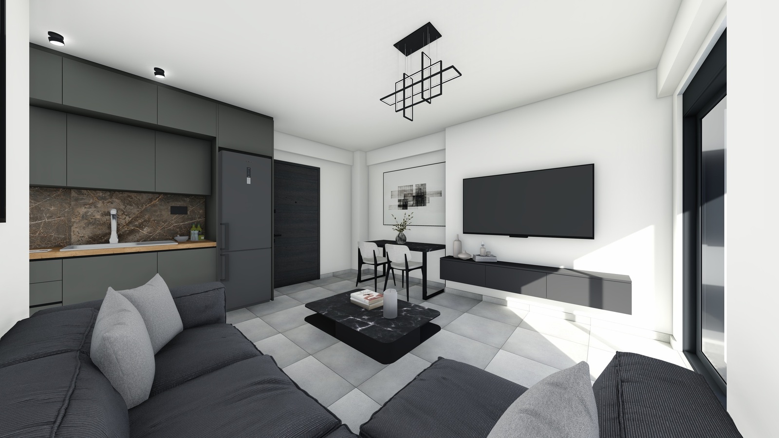 Αποτελείται από ενιαίο χώρο καθιστικό με κουζίνα, μπάνιο, 1 υπνοδωμάτιο, μεγάλο μπαλκόνι,