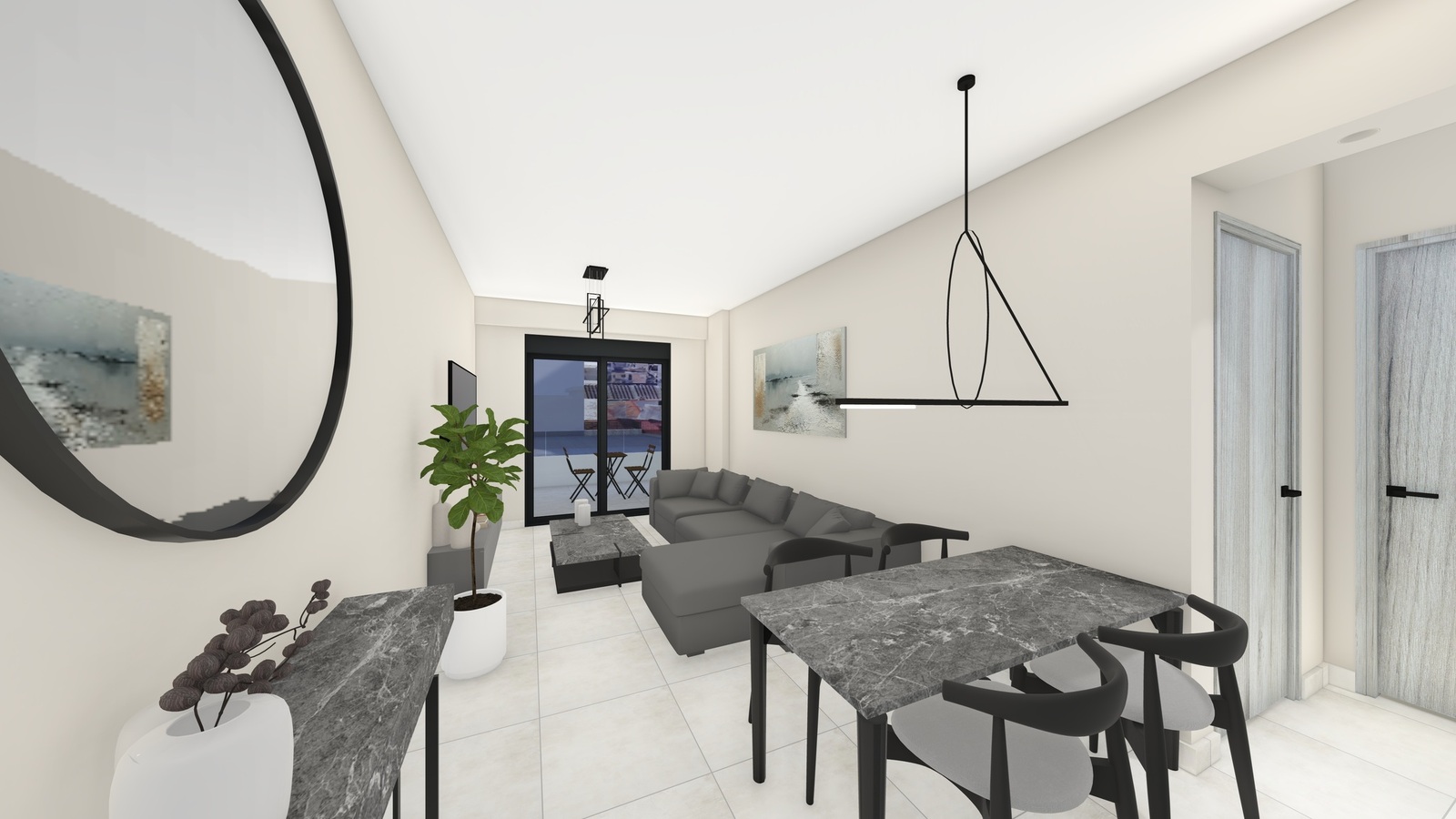 Οι εσωτερικές πόρτες των διαμερισμάτων θα είναι Laminate από άνθυγρο κάσωμα και πρεβάζι πλακάζ.